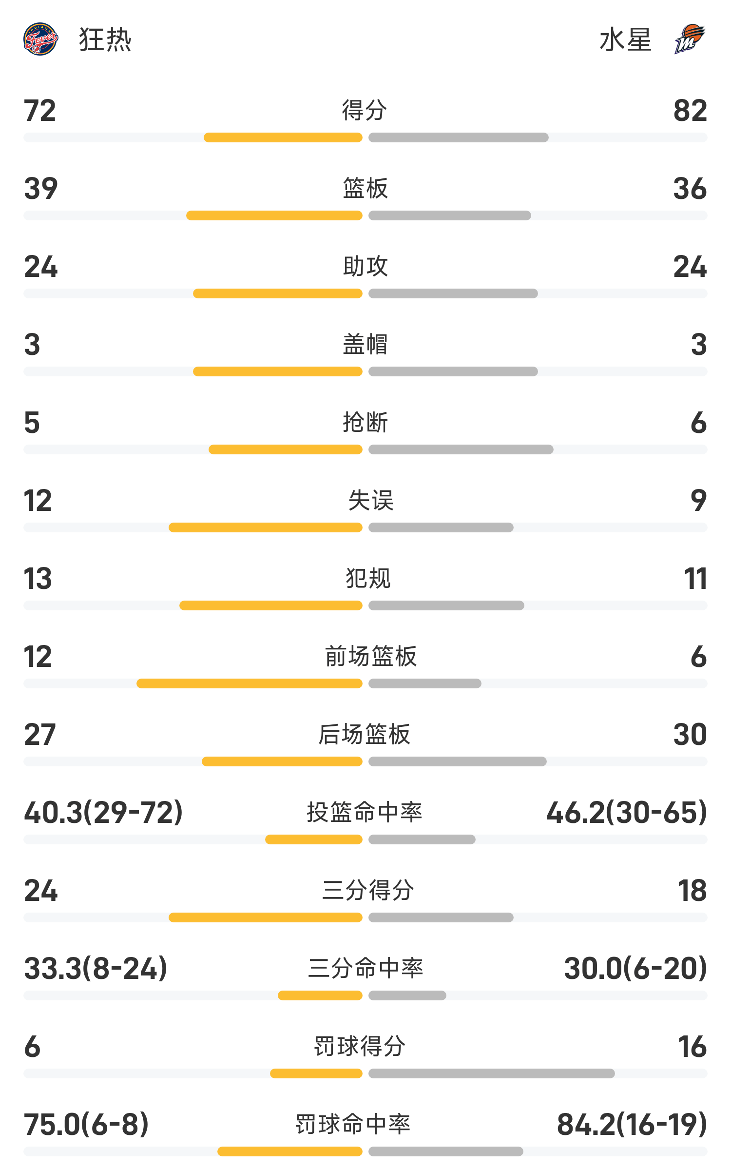 09月03日讯 25赛季WNBA常规赛,水星对阵狂热。双方全场战罢,水星85-79战胜狂热。托马斯得到22分9板9助率队取胜,米切尔空砍全场最高的25分4板4助。球员数据 查看更多详细数据 查看更多...